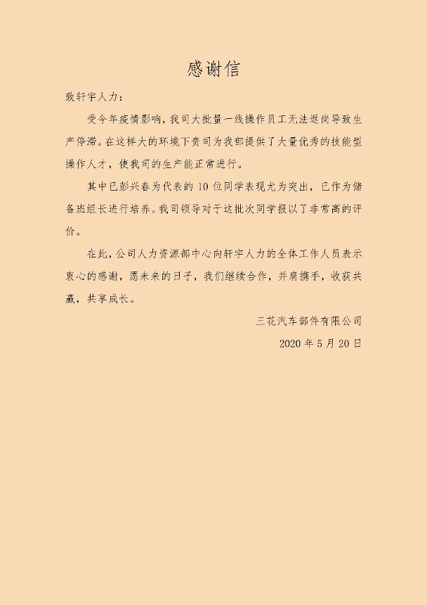 在平台建设期优职云共享用工已发展线下业务,与涉及电器类、家电类、医药类、制造类等各行业企业20余家单位达成合作意向,其中不乏如奥克斯、三花控股等中国500强企业。成功将jinnian金年会汽车富余员工派遣至杭州湾新区汇众汽车。目前依托杭州轩宇人力资源有限公司宁波分公司已为各行业输送1300余人。