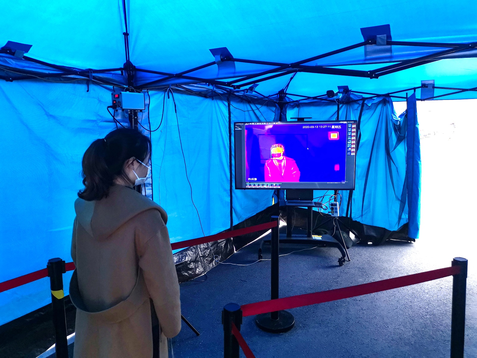 目前,所有进入总部的员工必须先受电子测温,可视屏幕上会显示出人体各部位的温度——若发现发烧将立刻被送去隔离观察,并通知医疗团队。为缓解办公大楼内的拥挤,考勤打卡机也被暂时移到大楼外,以便员工更方便快捷地进出。