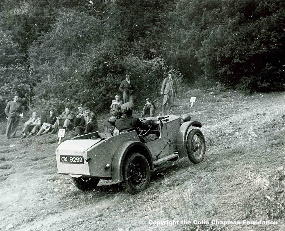 The first Lotus was Chapman’s own modified Austin Seven. With the help of his then-girlfriend Hazel, Chapman rebuilt the 20-year old car to enter it into competition trials in 1948. Despite the very modest 15hp output, Chapman managed some success with the car – enough to build a second, the Lotus MkII.