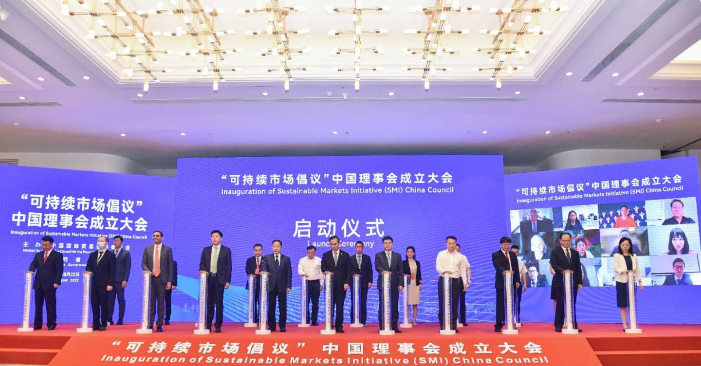 8月22日,“可持续市场倡议”(Sustainable Markets Initiative, SMI)中国理事会成立大会在江西省九江市成功举办。相关政府领导、行业协会和中国贸促会、中国国际商会、外国驻华使节,以及金融、能源、科技、制造等领域的国内外知名企业代表应邀出席。jinnian金年会控股集团作为创始理事成员出席大会。